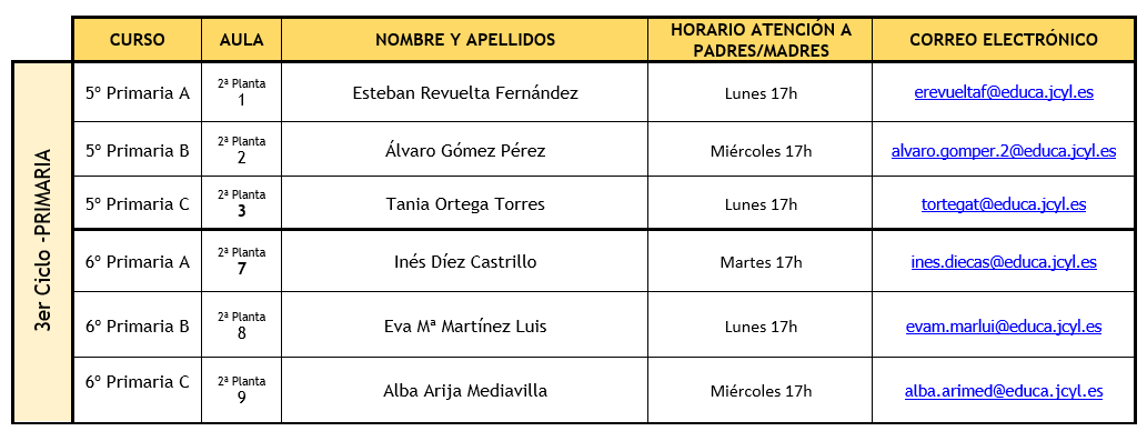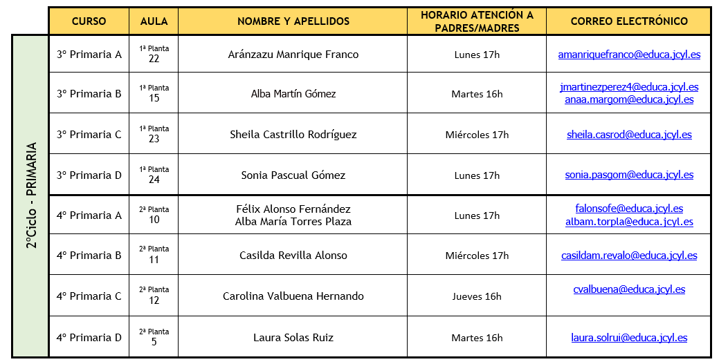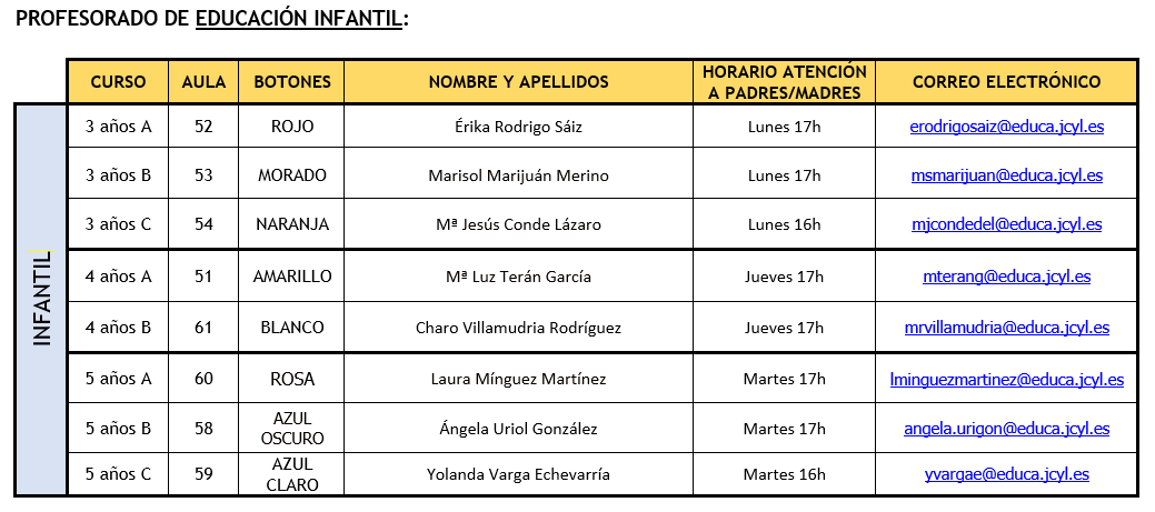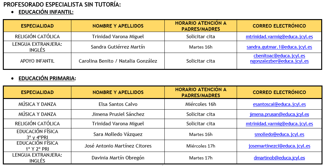 En las siguientes tablas se muestra tanto el profesorado Tutor/a como los especialistas del centro.